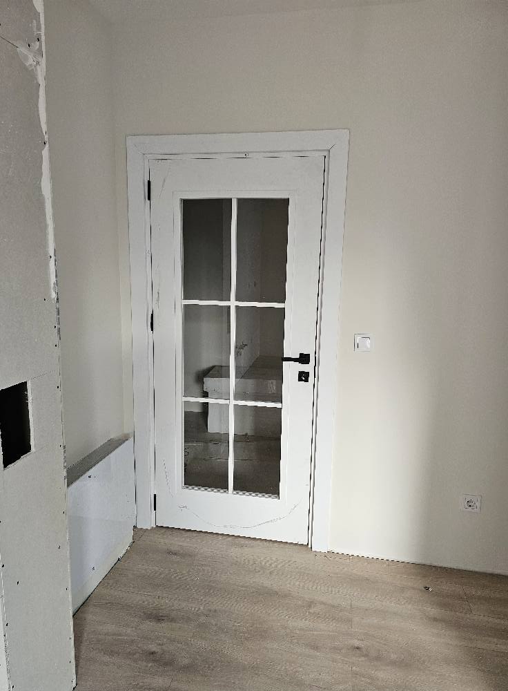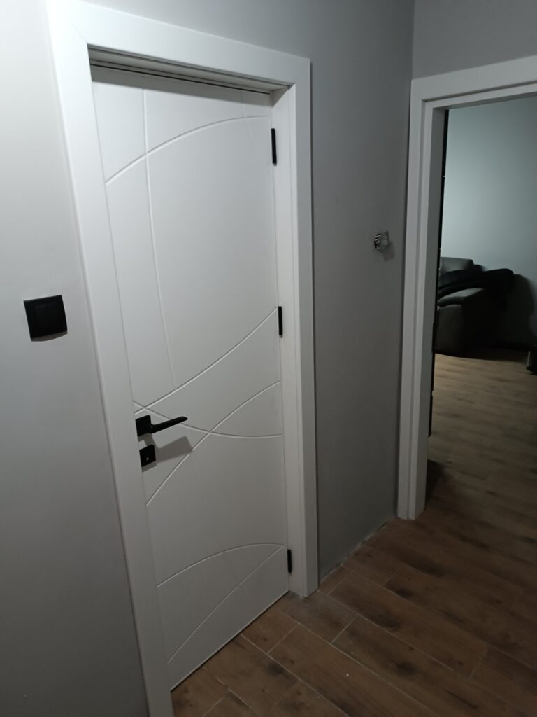 Бели врати + дървен под – топла и уютна комбинация, която създава баланс.