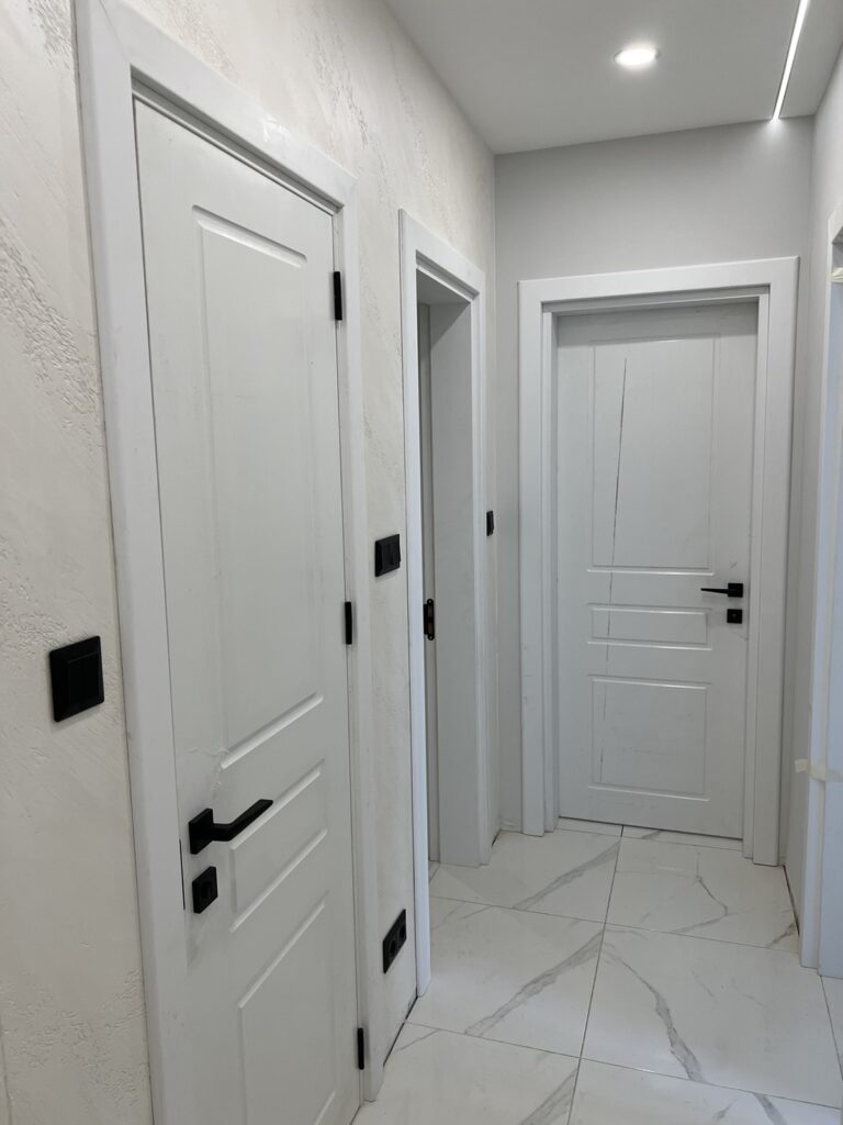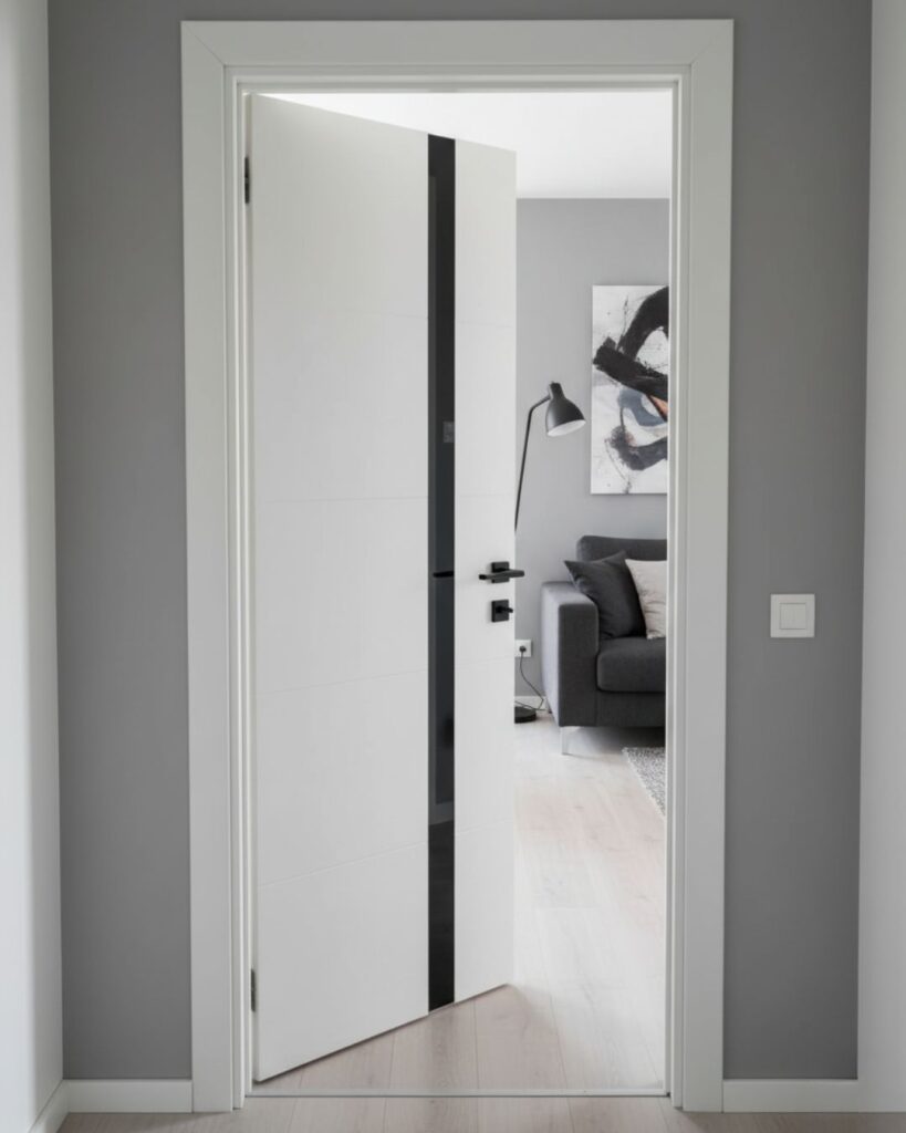 Бели врати + черни дръжки – модерен и елегантен контраст, който винаги изглежда стилно.