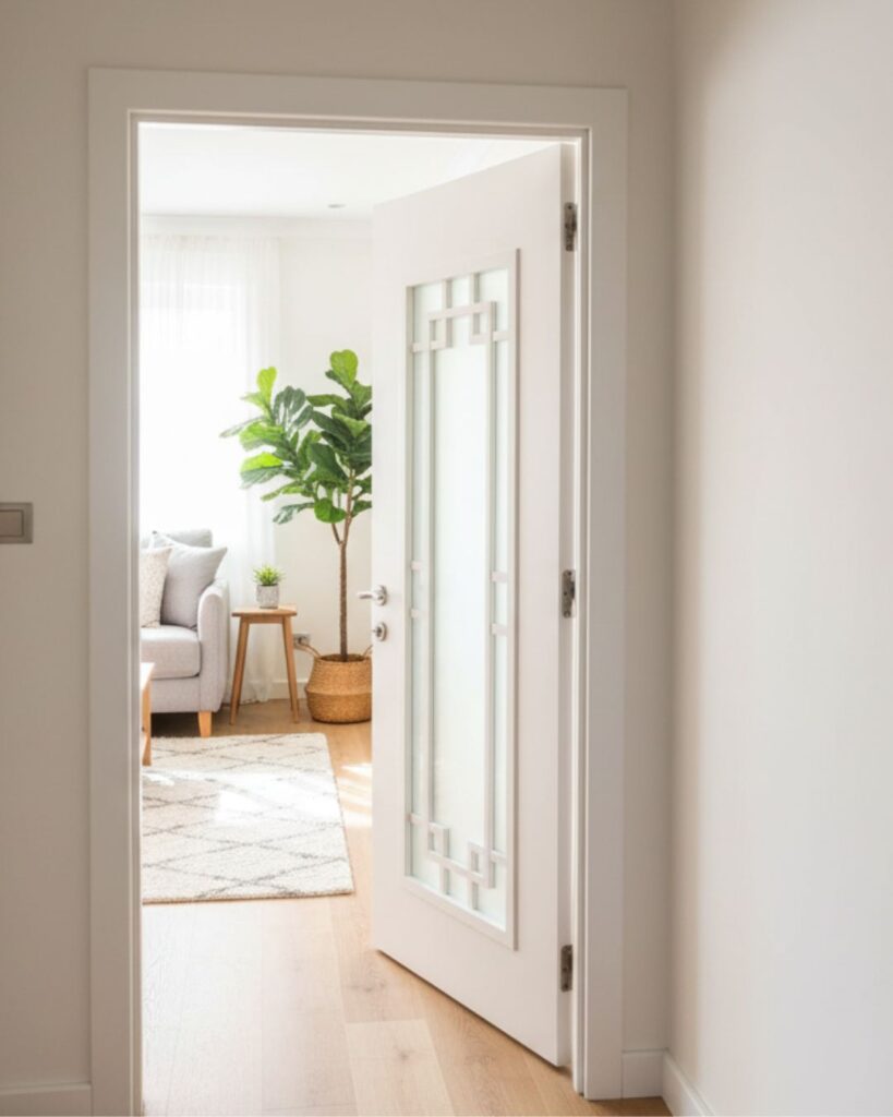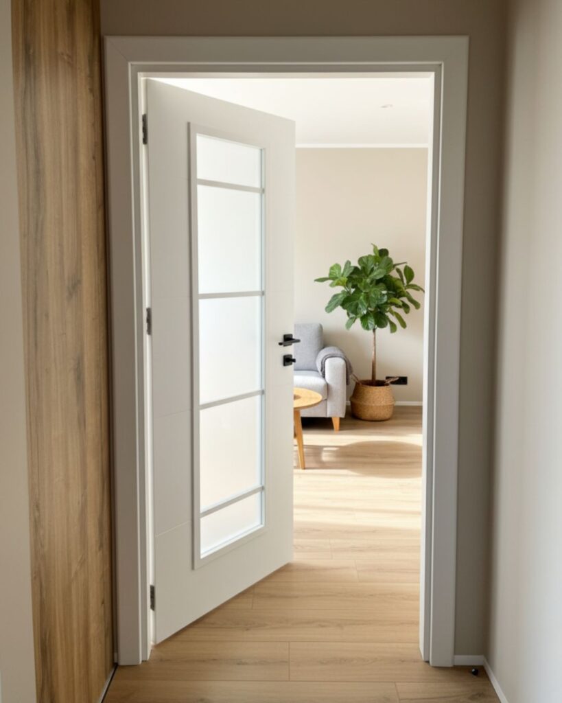 Бели врати + стъклени детайли – създават илюзия за повече пространство и светлина.