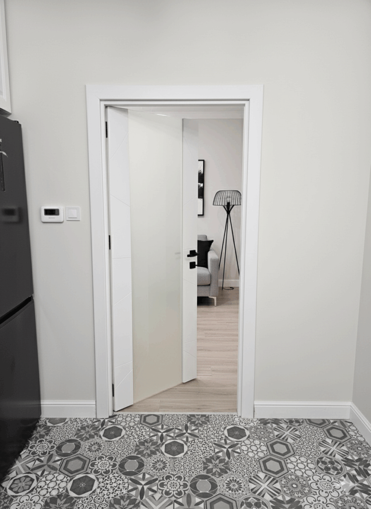 За малки апартаменти това е безценен ефект. Белите врати са като малка архитектурна илюзия. Те не добавят реални квадратни метри, но създават впечатлението, че живееш в по-голям и свободен дом.