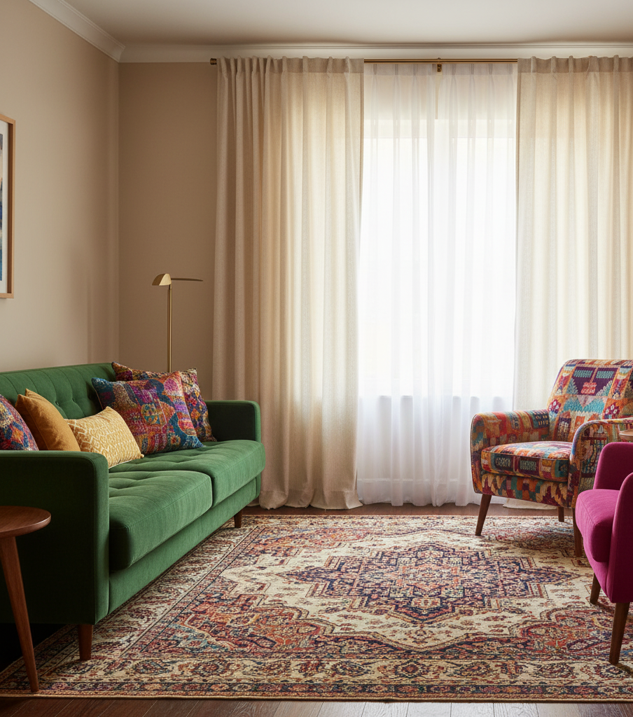 Ако стените са неутрални, завесите в по-ярки цветове могат да бъдат смелият акцент. Ако мебелите са пъстри, неутралните завеси ще донесат баланс. Мислете за цвета като за подправка в ястието – той трябва да допълва, не да заглушава другите вкусове.